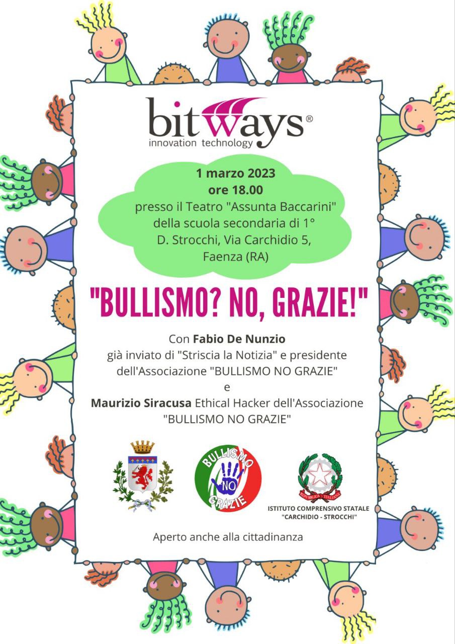 Bullismo? No, Grazie + Aggiungi a Google Calendar + iCal / Outlook export Data 01 Mar 2023 Expired! Ora 8h45 Luogo Teatro "Assunta Baccarini" Scuola Secondaria D. Strocchi, Via Carchidio 5, Faenza RA Condividi questo evento
